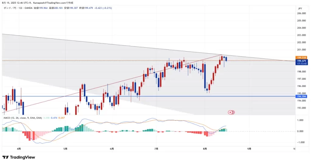 ・ポンド円は、2024年7月からの下方トレンド線を抜けたかどうかというラインにいます